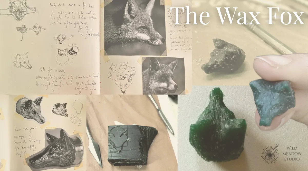 “The Wax Fox” begins as a sketch — a study of form, texture, and spirit. Through careful carving and patient refinement, the fox emerges from the wax, alive with character and intent, awaiting its transformation into precious metal.